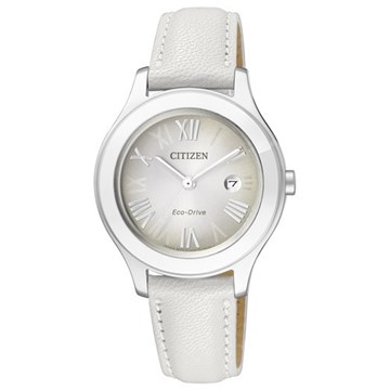 Movimento Eco Drive (a carica luce infinita), con riserva di carica di 240 giorni - Cassa in acciaio, cinturino in morbida pelle, quadrante in metallo - WR 5 bar - Diametro cassa 31 mm.