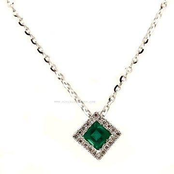 Collana con ciondolo in oro bianco 750/1000 (18 carati) Gr. 2.07 Diamanti naturali taglio rotondo a brillante carati 0.06 Smeraldo carati 0.25 Referenza: CCOL008