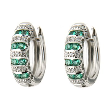 Orecchini con smeraldi in oro bianco 750/1000 ( 18 carati ) - Diamanti naturali taglio rotondo a brillante carati 0.15 purezza Vvs2-Vs1 colore G-H - Smeraldi carati 0.40