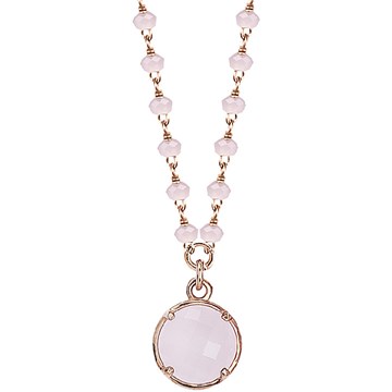 Collana Boccadamo Donna della collezione Inkanto, in bronzo placcato oro rosa e cristalli rosa milk, diametro del pendente 1 cm. Lunghezza della collana estendibile da 38 a 42 cm. Referenza: IK/GR29