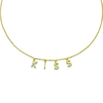 Collana Kiara Donna della collezione Emotion, in ottone dorato con pietre sintetiche, gioiello composto da quattro charms che compongono la scritta KISS. Lunghezza cm 42+4. Referenza: KCLD3883G
