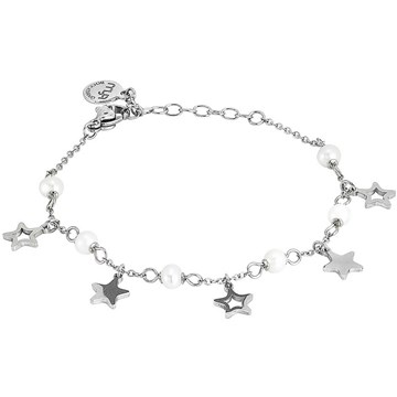 Bracciale Boccadamo Donna della collezione Mikiami. Bracciale con pendenti a forma di stelle e perle naturali coltivate. Materiale: acciaio. Misure: lunghezza da cm 16 a cm 19,5. Dimensione: diametro perle naturali coltivate cm 0,4. Chiusura: con moschettone. Referenza: MK/BR03
