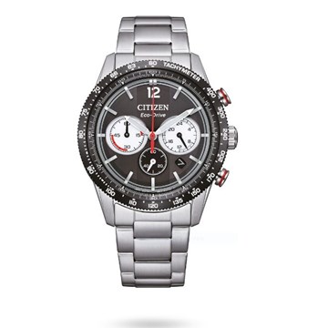 Orologio da uomo Citizen. Movimento eco-drive a carica luce con riserva di carica di 270 giorni. Cronografo a 1/5 di sec fino a 60 minuti. Cassa in acciaio con fondo serrato a vite. Dimensione cassa : 39 mm. Bracciale in acciaio con chiusura di sicurezza. vetro minerale curvato. Wr 10 bar. Referenza: CA4714-55E