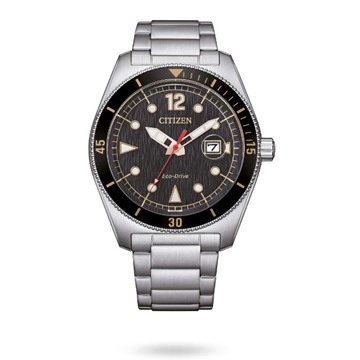 Orologio da uomo Citizen eco-drive. Cassa in acciaio con fondo a vite. Diametro cassa 43 mm . Vetro minerale. Bracciale in acciaio con pulsanti. Resistenza all'acqua fino a 10 bar. Referenza:AW1888-53E.