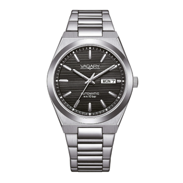 Orologio Vagary da uomo della collezione G.Matic. Cassa in acciaio con fondo a vite con oblò trasparente che permette di ammirare il movimento meccanico. Diametro cassa 38mm. Vetro minerale. Bracciale in acciaio con chiusura deplyante e pulsanti di sicurezza. Resistenza all'acqua fino a 10 bar. Referenza:IX3-611-51